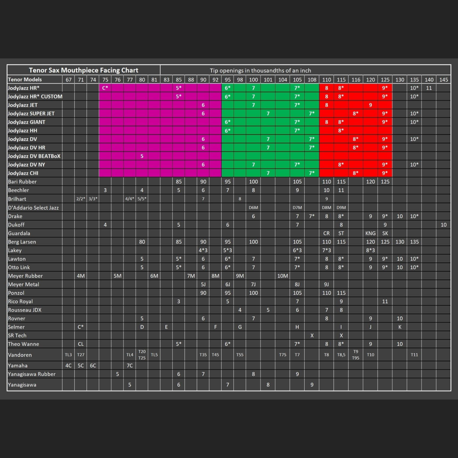 The HR* CUSTOM DARK Tenor is our premium line of hard rubber saxophone mouthpieces, where the goal is to make the most beautiful sounding and playing piece that we possibly can. In order to achieve this goal we started with the finest material used in hard rubber mouthpieces today, which is our proprietary Chedeville® Rubber. CHR (Chedeville Rubber) is a softer purer formula than regular standard hard rubber. This rubber imparts a rich warm sound. A large round chamber puts the timbre in a warm honey zone and the inspired addition of a thick heavy gold plated brass band on the shank boosts the amount of harmonics in the sound.