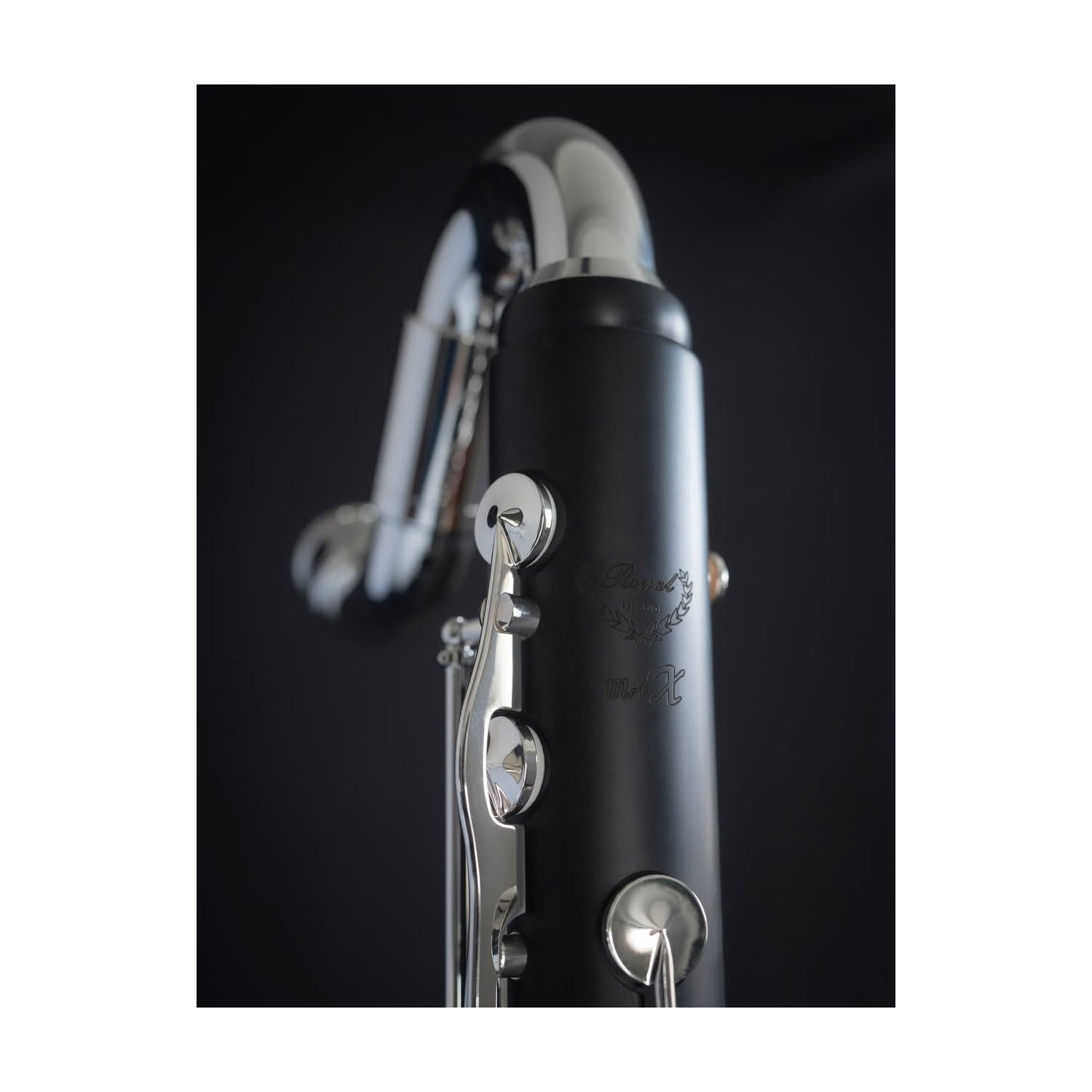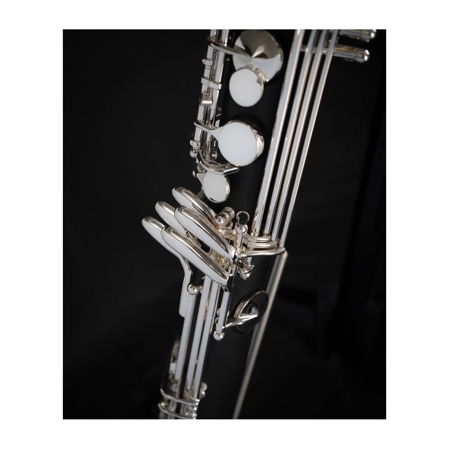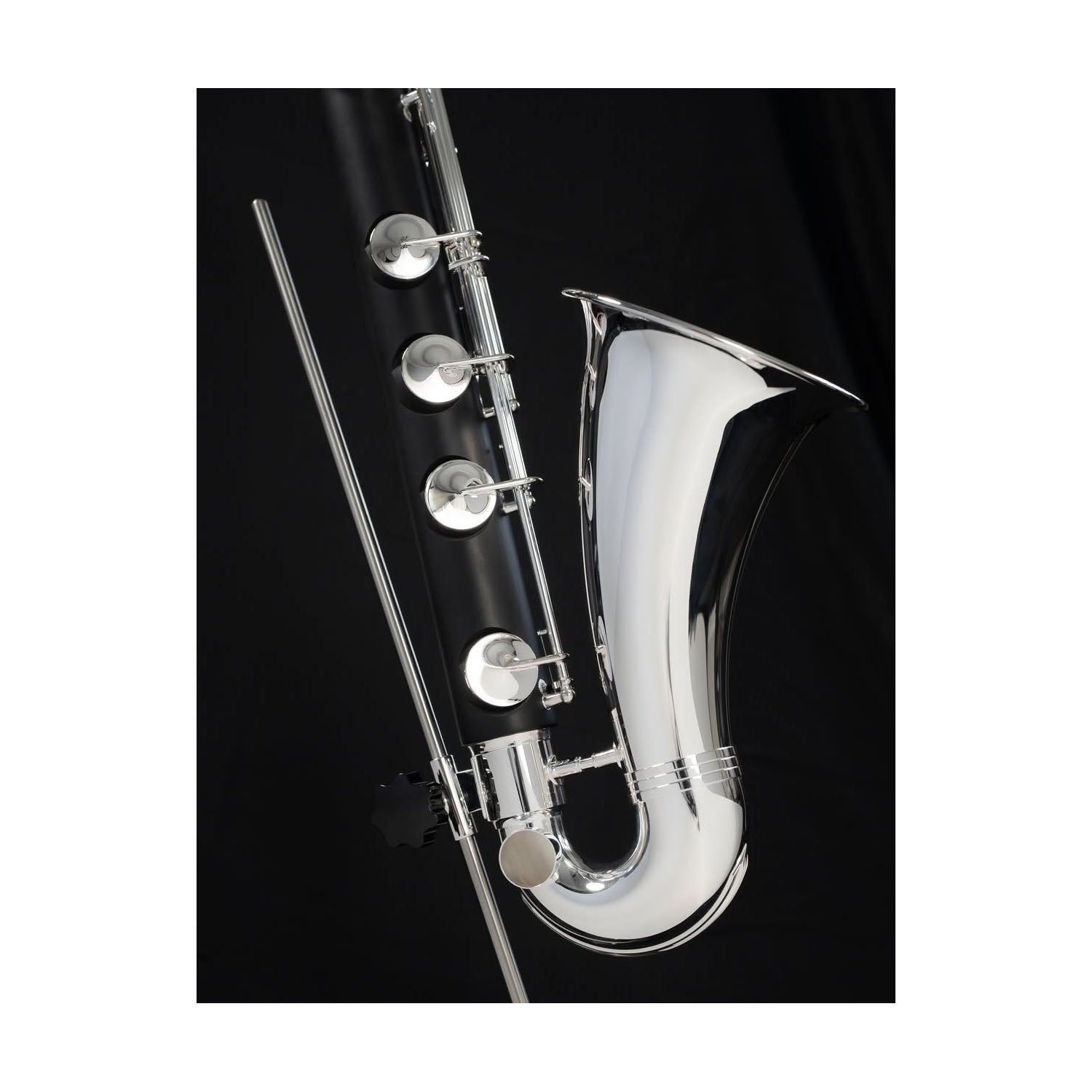 The Royal Global Max is a true revolution in bass clarinet manufacturing. Based on the Polaris bass clarinet, the Max retains all of the professional features and acoustical designs but is manufactured from Royal's exclusive ECO material. This new material, years in the making, is a combination of mostly grenadilla powder with a special synthetic resin. It shares many of the same acoustical properties of grenadilla, with a similar density, but without the risk of cracking or dimensional movement. The added dimensional stability and durability makes the Max bass clarinet the premium choice for those who perform in a variety of environmental conditions whether it's the classroom, pit orchestras, the parade block or the marching field.