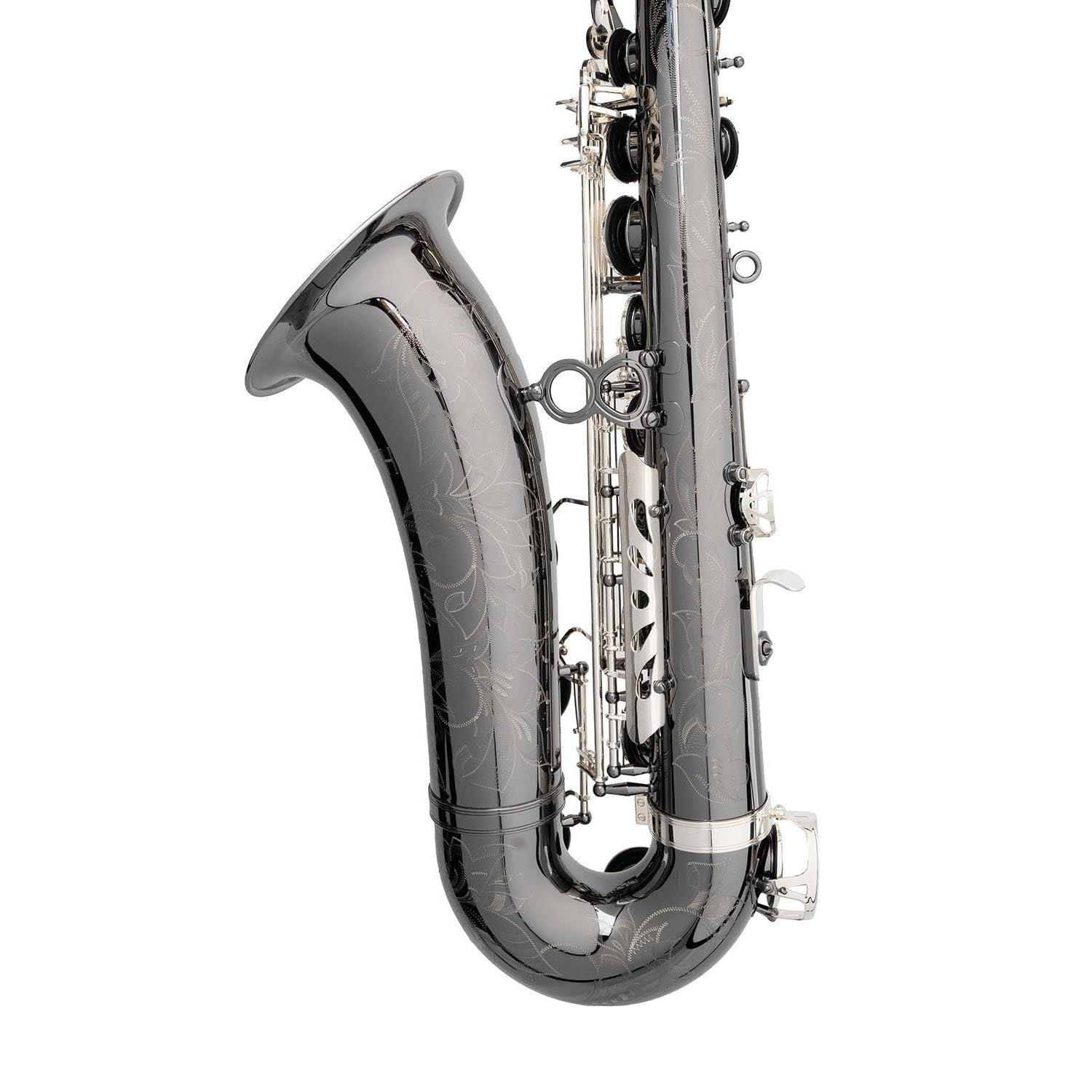 The SX90R Shadow saxophone pushes the limits of design and performance. The body is made of German nickel-silver that resonates strongly and responds quickly to the players demands. Black nickel plating coats the body adding depth to the well centered and powerful sound. The inner bell and key work are silver plated to highlight the extensive hand engraving for a vibrant and dazzling appearance. From the small, intimate club to a concert arena for thousands of fans, the SX90R Shadow saxophone lets the player take control and offers limitless potential for expression and sound.